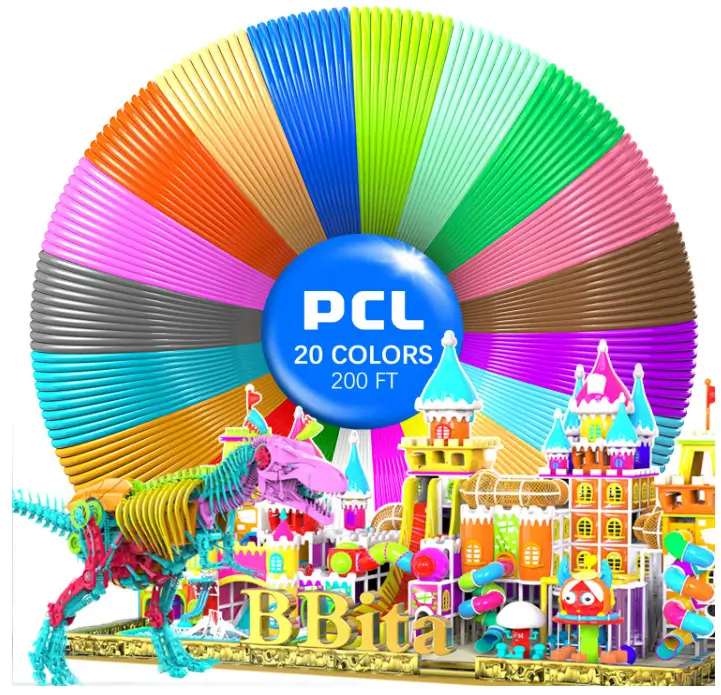 The 3D Printing Pen PCL Filament Refills set includes 20 vibrant colors, offering 200 feet of total filament for endless creative possibilities. Made with a low melting temperature of 70℃, these 1.75mm filaments are safe, non-toxic, and perfect for kids and beginners. Each strand features a high-precision diameter that ensures smooth, non-clogging performance for consistent 3D drawing. Ideal for art projects, school activities, and DIY creations, this refill pack brings color and imagination to every 3D pen project (3D pen not included)