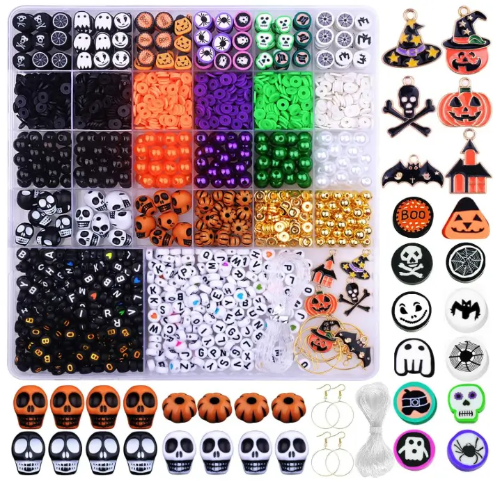 The 2088PCS Halloween Polymer Clay Beads Bracelet Making Kit includes 24 fun and festive bead styles such as skulls, pumpkins, ghosts, and other spooky charms — perfect for Halloween-themed jewelry. Each bead is made of high-quality polymer clay that’s lightweight, durable, and comfortable to wear. This set is ideal for crafting unique bracelets, necklaces, and earrings that stand out during the Halloween season. Great for women, girls, and DIY enthusiasts, it’s a fun and creative way to make personalized accessories or gifts for friends and family