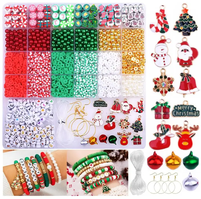 The 3680PCS Christmas Polymer Clay Beads Charms Kit is perfect for crafting festive bracelets, necklaces, and DIY gifts during the holiday season. It includes an adorable assortment of Christmas-themed beads such as trees, snowmen, Santa Claus, snowflakes, bells, socks, and reindeer, adding cheerful charm to every project. Made from high-quality polymer clay, the beads are lightweight, durable, and comfortable to wear. Ideal for kids, girls, and craft enthusiasts, this set makes creating personalized Christmas jewelry and decorations both fun and meaningful