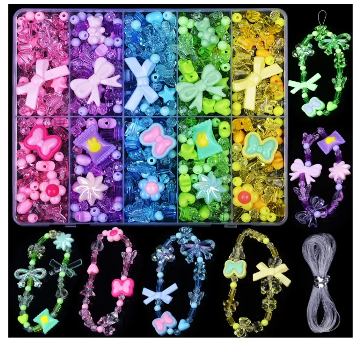 The 300–500PCS Assorted Acrylic Beads Set is perfect for making adorable bracelets, keychains, and phone charms. It includes a delightful mix of pony beads, flowers, bows, butterflies, candy shapes, stars, hearts, and gummy bear charms — all in bright, fun colors. Made from lightweight and durable acrylic, these beads are easy to thread and ideal for kids and adults alike. Perfect for DIY jewelry, crafts, and creative gifts, this set brings endless possibilities for cute and colorful creations