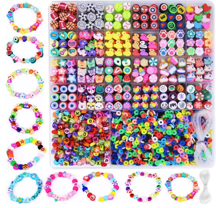 2480pcs Polymer Clay Beads Charms for Bracelets Making Kit Cute Fun Charms Beads Friendship Bracelet Making DIY Arts Crafts Birthday Gifts Toys for Kids Girls Age 6-13