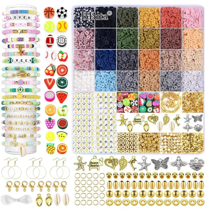 The BBita 1000PCS Polymer Clay Beads Bracelet Making Kit includes 24 adorable styles of beads featuring flowers, animals, rainbows, and eye charms — perfect for fun and colorful jewelry designs. Each bead is made from high-quality polymer clay that’s lightweight, durable, and comfortable to wear. The set provides everything needed to create unique bracelets, necklaces, earrings, and other DIY accessories. Ideal for women, girls, and craft lovers, it’s a great way to explore creativity, make personalized gifts, and enjoy hours of crafting fun