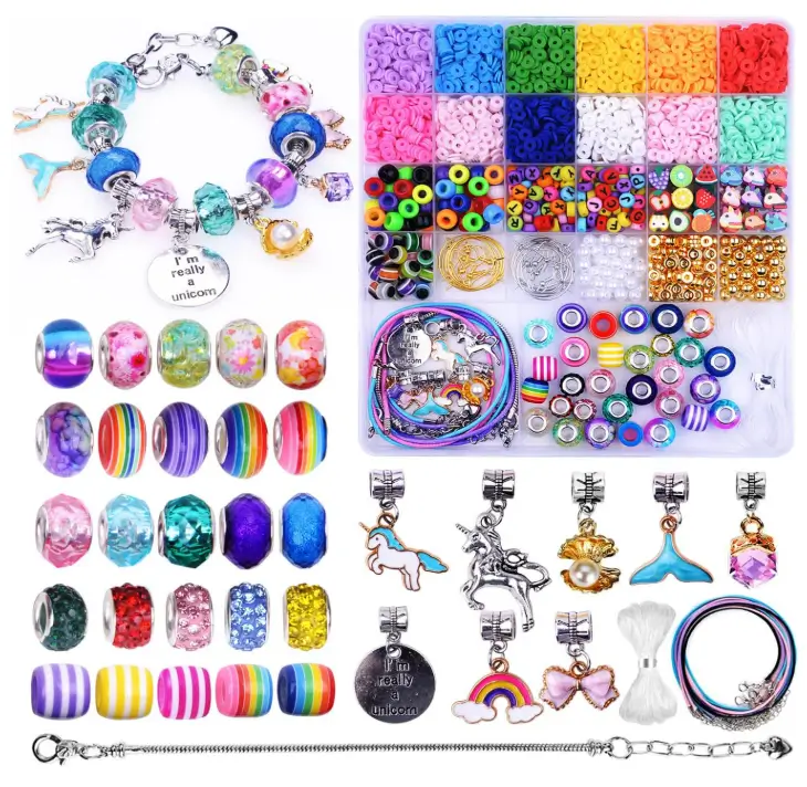 2880pcs Girls Toys Bracelet Making Kit,Beads Charm Jewelry Making Kit Supplies,Clay Beads Unicorn/Mermaid Crafts Birthday Christmas Gifts for Girls